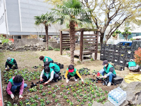 이도1동 부녀회 봄맞이 계절화 식재