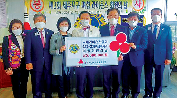 국제라이온스협회 354-G(제주)지구(총재 김창현)는 지난 3일 지구 사무실에서 제3회 제주지구 여성의 날을 맞아 봉사금 500만원을 제주사회복지공동모금회(회장 김남식)에 기탁했다.