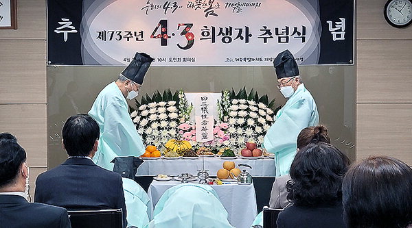 서울제주도민회(회장 강한일)는 3일 서울도민회 회의실에서 제73주년 4·3희생자 추념식을 거행했다.