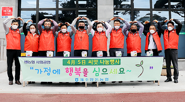 제주양돈농협(조합장 고권진)은 지난 5일 한림지점 인근에서 범농협 사회공헌사업 영농지원 활동의 일환으로 지역주민을 대상으로 꽃씨와 채소 씨앗 나눔행사를 진행했다.