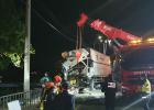 7일 제주시의 한 공업사에서 국립과학수사연구원이 사고를 일으킨 4.5t 트럭에 대한 감식을 벌이고 있다. 이상국기자