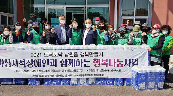 남원읍지역사회보장협의체(공동위원장 양재복·현종시)와 남원읍새마을부녀회(회장 강홍협)는 최근 지역 내 여성지적장애인 61명을 대상으로 '여성 지적장애인과 함께하는 행복나눔' 사업에 착수했다.