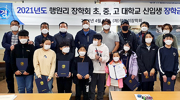 2013년 설립된 행원리장학회는 지난해까지 대학생 122명에 6620만원, 초등학생 498명에 4980만원, 중·고등학생 32명에 960만원을 지급하는 등 총 652명에 1억2560만원의 장학금을 전달하는 등 학습의욕을 고취하고 인재양성에 힘쓰고 있다.