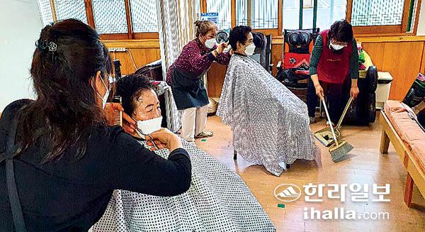 함덕농협(조합장 현승종)과 농촌사랑자원봉사단(단장 부연희)은 지난 21일 회원 30명이 함덕경로당을 찾아가 미용 봉사를 실시했다.
