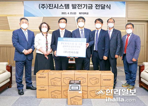 바이오 벤처기업인 (주)진시스템(대표 서유진)은 지난 23일 제주대학교(총장 송석언)에 PCR 시스템 등 4종의 장비(2억51만원 상당)를 대학 발전기금으로 기증했다.