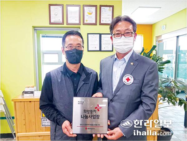 제주시 이호1동에 위치한 제주마당(대표 송영자)은 지난 23일 대한적십자사제주특별자치도지사(회장 오홍식)에서 실시하는 희망나눔 명패 달기 캠페인에 동참했다.