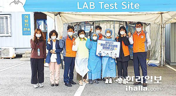 또한 제주를 방문하는 관광객 및 외국인에 의한 코로나19 감염병의 제주도내 유입을 막기 위해 설치된 제주국제공항 워크스루 선별진료소를 방문해 의료진 및 현장 근무자용 간식을 지난 22일부터 일주일간 제공하기로 했다.