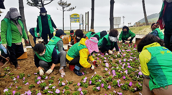 제주시 조천읍(읍장 윤승환) 조천읍새마을부녀회(회장 김상정)은 지난 24일 관내 사계절 꽃피는 환경 조성을 위해 함덕해수욕장 잔디광장 도로변에 봄맞이 계절화를 식재했다.