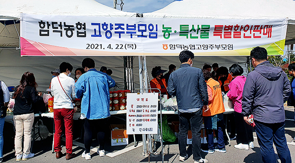 함덕농협(조합장 현승종)과 고향주부모임(회장 이영화)은 코로나19 장기화로 소비 부진을 겪고 있는 농·특산물 판매 확대를 위해 지난 22일 함덕농협하나로마트 주차장에서 특별할인판매 행사를 진행했다.