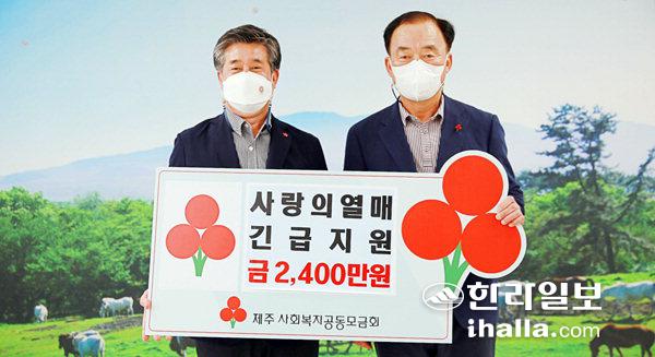 제주사회복지공동모금회는 아라동주민센터 긴급지원금 2400만원을 전달했다. 긴급지원금은 아라동 관내 어려운 이웃의 생계비와 의료비로 사용됐다.
