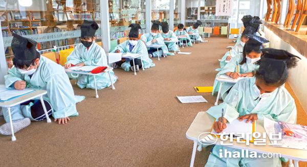 제주북초등학교(교장 홍미옥)는 지난달 29~30일 4~6학년을 대상으로 '4·3평화 프로젝트로 인권을 말하다'를 대주제로 과거시험 재현마당을 운영했다.