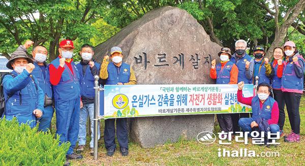바르게살기운동 제주특별자치도협의회(회장 좌중언)는 지난 2일 제주시 종합운동장 일대에서 ‘2050 탄소 중립 실현’을 주제로 ‘자전거 생활화 실천해요!’ 캠페인을 전개했다.