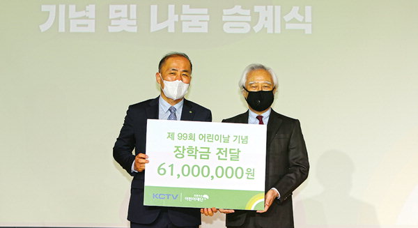 해마다 어린이날을 맞아 제주도내 소외 가정을 위해 용돈을 기부했던 KCTV 제주방송 공성용 회장의 아름다운 나눔실천이 올해도 이어졌다. 공 회장은 지난 3일 어린이날 장학금으로 6100만원을 초록우산 어린이재단 제주지역본부에 기탁했다. 이번 기탁금은 제주도내 610명의 소외가정 어린이에게 전달됐다.