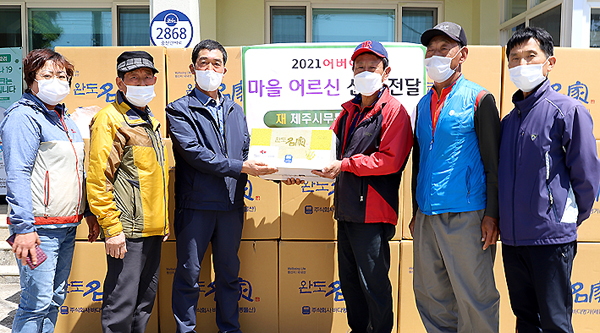 제주시 무릉2리향우회(회장 김기현)는 지난 5일 어버이날을 앞두고 무릉2리사무소(이장 고희창)에서 고향 어르신들을 위한 선물세트(165명분, 150만원 상당) 전달식을 가졌다.