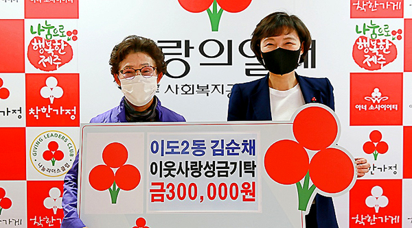 제주시 이도2동에 거주하는 김순채씨는 지난 4일 제주사회복지공동모금회(회장 김남식)를 방문해 이웃사랑 성금 30만원을 기탁하며, 19년째 나눔을 실천했다.