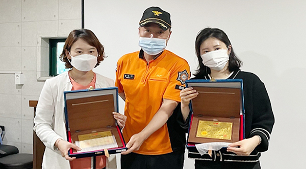 배지를 받은 3인(강명자·최종수·김수현)은 심정지 환자에게 심폐소생술을 실시해 회복에 큰 역할을 했다.