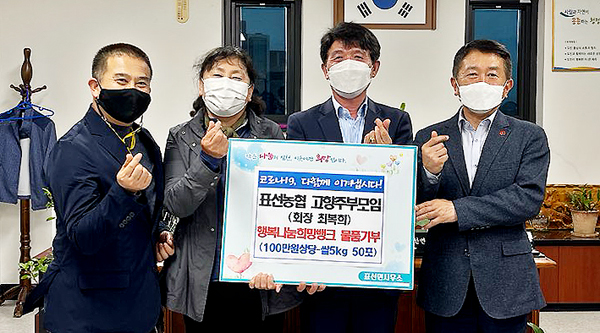 표선농협 고향주부모임(회장 최복희)은 지난 4일 표선면사무소에서 표선면지역사회보장협의체에 쌀(5㎏) 50포(100만원 상당)를 기탁했다.