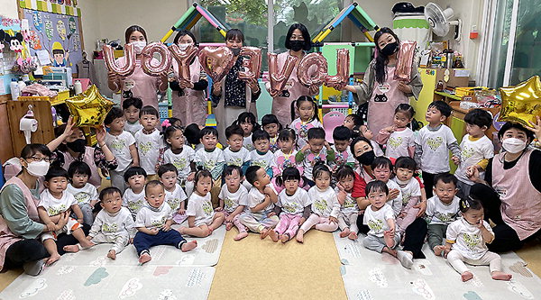 부영그룹이 어린이날을 맞아 전국 68곳 '부영 사랑으로 어린이집' 원아들에게 하트 모양 티셔츠 2763장을 선물했다.