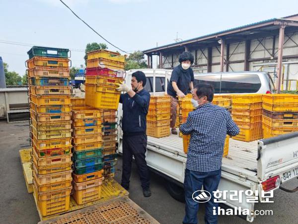성산일출봉농협(조합장 강석보)은 지난 25일 농협 농산물산지유통센터에서 폐컨테이너 교환사업을 벌여 150여 농가로부터 1만5000여 개의 컨테이너를 수거했다.