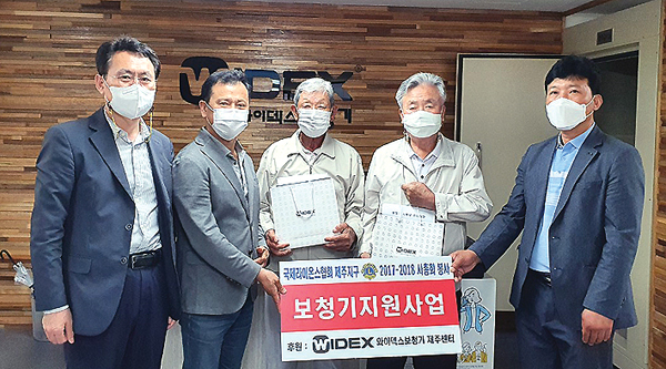 국제라이온스협회 354-G지구 2017-2018 사총회(회장 송공주)는 지난 1일 와이덱스보청기 제주센터(원장 강동우)와 함께 어르신 두 분을 선정해 보청기 2대(440만원 상당)를 전달했다.