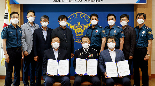 서귀포경찰서(서장 변민선)는 지난 1일 경찰서에서 김성범(중문농협조합장) 서귀포시 농축협운영협의회장, 현학렬 NH농협은행 서귀포시지부장 등이 참석한 가운데 블랙박스형 CCTV 설치 확대 사업에 대한 업무협약을 체결했다.