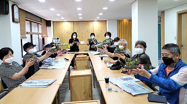 제주시 이도2동 주민센터는 지난 1일 도남1차e-편한세상경로당(회장 임선영)회원 20명을 대상으로 찾아가는 경로당 치매예방관리프로그램 실내정원 가꾸기 활동을 실시했다.