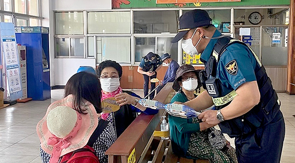 제주동부경찰서 오라지구대(대장 김용학)는 최근 보이스피싱 범죄가 급증함에 따라 관내 터미널 및 금융기관 주변 등을 다니며 지역민들에게 동부서에서 자체 제작한 홍보용품을 전달하는 등 보이스피싱 예방활동을 전개했다.