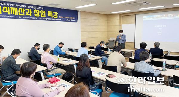 제주대학교 지식재산교육센터(센터장 김인중)는 지난 3일 고려대 산업경영공학부 이철웅 교수를 초빙해 대학 취업전용강의실에서 교수와 직원들의 지식재산 역량강화를 위한 '지식재산과 창업' 특강을 개최했다.