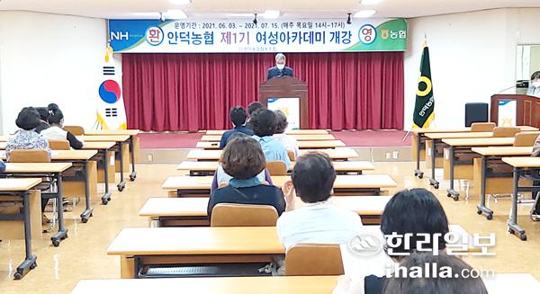 안덕농협(조합장 유봉성)은 지난 3일 농협 회의실에서 여성조합원 30여 명을 대상으로 제1회 여성아카데미 개강식을 개최했다.