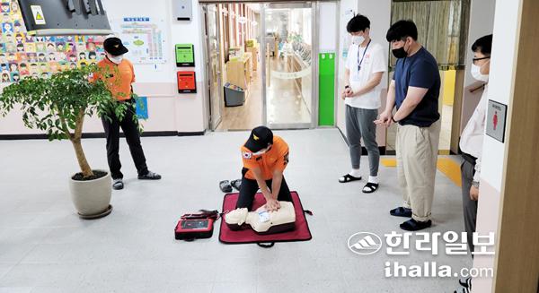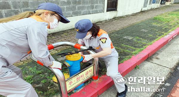 제주소방서 화북119센터 의용소방대(대장 이치우·오춘희)는 6일 여름철을 앞두고 화북동 일대 소방용수시설을 점검했다. 또 소화전 주변 불법 주·정차 차량 단속 및 계도활동도 전개했다.