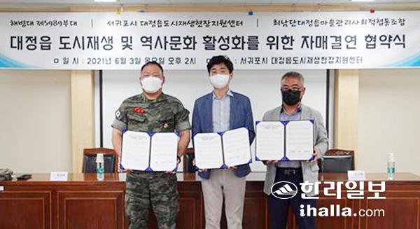 서귀포시 대정읍도시재생현장지원센터, 최남단대정읍마을관리사회적협동조합, 해병대 제5989부대는 6월 '호국 보훈의 달'을 맞아 지난 3일 '대정읍 도시재생 및 역사문화활성화를 위한 자매결연'을 체결했다.