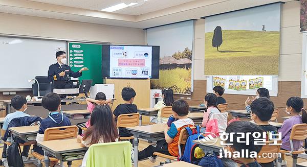 서귀포시 안덕초등학교(교장 고희숙)는 지난 3일 2학년 학생들을 대상으로 찾아가는 진로체험 프로그램을 실시했다. 이번 프로그램은 법률·소방·봉사 분야 중 경찰관에 대한 체험으로 이뤄졌다.