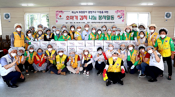 대한적십자사봉사회 서귀포시지구협의회(회장 강미정)는 지난 8일 남원생활체육관에서 오홍식 회장과 봉사원 등 50여 명이 참여한 가운데 희망풍차 결연 400가구에 초마기 김치 3800㎏을 만들어 전달했다.