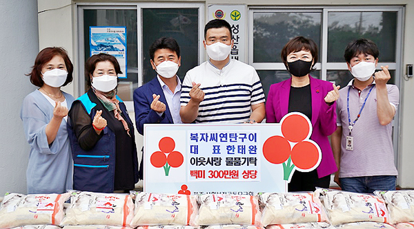 복자씨연탄구이(대표 한태완)는 지난 9일 성산읍(읍장 강기종)을 방문해 300만원 상당의 이웃돕기 쌀(5㎏) 200포를 현물 기탁해 나눔과 사랑의 마음을 전달했다.
