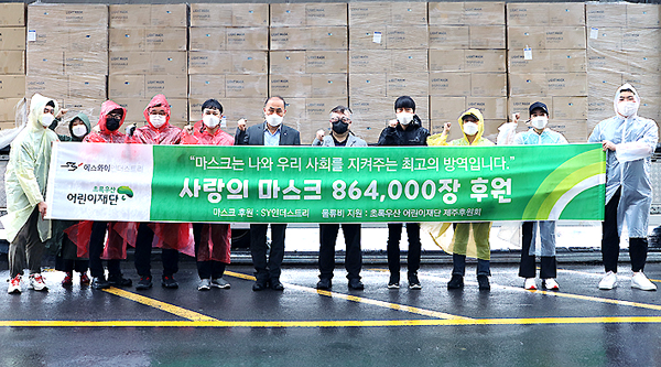 경기도 안산시 소재 (주)에스와이인더스트리(대표 이정환)가 지난 11일 자사 생산제품인 라이트 마스크 86만4000장(3억1000만원 상당)을 초록우산어린이재단 제주지역본부(본부장 김희석)에 기부했다.