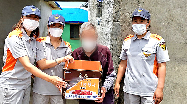 제주서부소방서 한경119센터(센터장 장행순)와 한경여성의용소방대(대장 홍운경)는 지난 12일 한경면 독거노인 및 국가유공자 20여 가구에 사랑을 담은 김치를 전달했다.