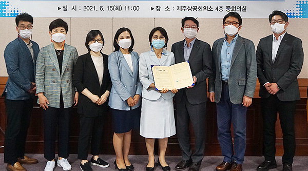제주상공회의소(회장 양문석)는 15일 상의 4층 회의실에서 제주평생교육장학진흥원(원장 허정옥)과 최근 화두가 되고 있는 ESG(환경보호·사회공헌·윤리경영) 경영이라는 가치 실현을 위한 업무협약을 체결했다.