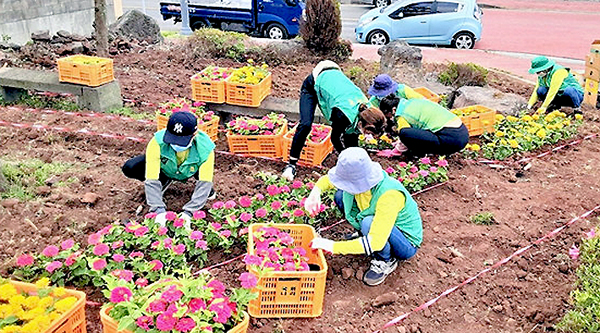 제주시 삼양동새마을부녀회(회장 양혜숙)는 최근 지역내 선사로 및 클린하우스 등에서 회원 10여 명이 참여한 가운데 마을 꽃 동산을 만들기 위해 백일홍 및 메리골드 등 8000여 본을 식재했다.