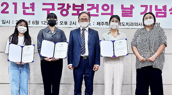 또한 이날 기념식에서는 제주도민의 구강보건증진에 기여한 유공자에 대해 도치과의사회장 표창 시상과 도내 치과 인재 육성을 위해 제주관광대학교 치기공과, 치위생과 모범 학생들에게 장학금을 전달하고 격려했다.
