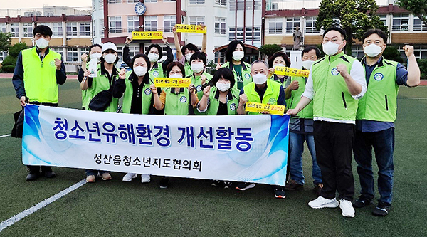 성산읍청소년지도협의회(회장 정덕숙)는 지난 21일 30여명이 참여한 가운데 성산읍 지역 내 학교 주변 및 청소년유해업소 밀집지역에서 민·관 합동으로 '2021년 청소년의달 청소년 유해환경 개선활동'을 실시했다.