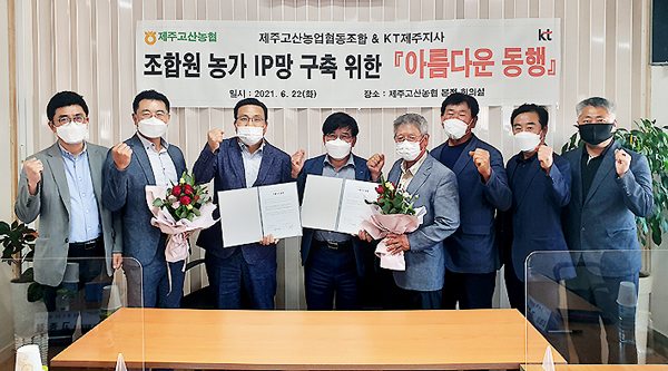 고산농협(조합장 고영찬)은 지난 22일 조합원농가에 IP망 구축을 위해 KT제주지사와 '아름다운 동행' 업무협약식을 개최했다. 협약의 주요 내용은 지역농업인의 시설하우스 등 인터넷 사각지대 농가에 초고속인터넷 기반시설을 구축해 조합원의 통신복지 향상에 기여하는 내용을 담고 있다.