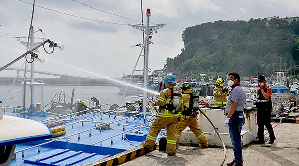 서귀포소방서는 지난 23일 서귀포항에서 서귀포해양경찰서, 서귀포수협, 서귀포항 어선주협의회 등 4개 기관·단체와 함께 선박화재 대비 합동소방훈련을 실시했다.