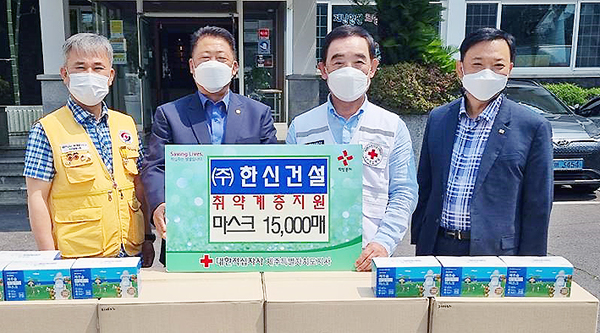 (주)한신건설(대표이사 김완석)은 지난 25일 적십자사 에서 제주적십자사(회장 오홍식)에 취약계층 지원을 위한 마스크 1만 5000장(300만원 상당)을 기탁했다.