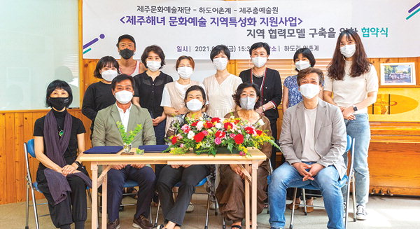제주문화예술재단(이사장 이승택)은 2021년 제주해녀문화예술지역특성화 지원사업에 선정된 4개 예술단체가 지난 6월 4개 마을 어촌계와 '제주해녀문화 활성화를 위한 지역 협력모델 구축을 위한 업무협약'을 잇따라 체결했다.