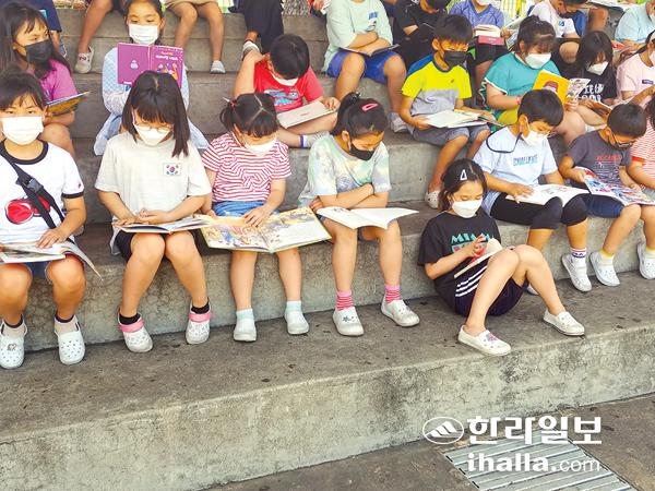 삼양초등학교(교장 강남철)는 함께 책읽는 즐거운 독서행사인 책읽기 플래시몹을 학년별로 운영하고 있다.