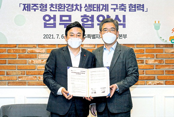 제주특별자치도와 현대차는 지난 6일 오후 제주도청 서울본부 회의실에서 제주형 친환경차 생태계 구축 협력을 위한 업무 협약식을 개최했다고 7일 밝혔다.