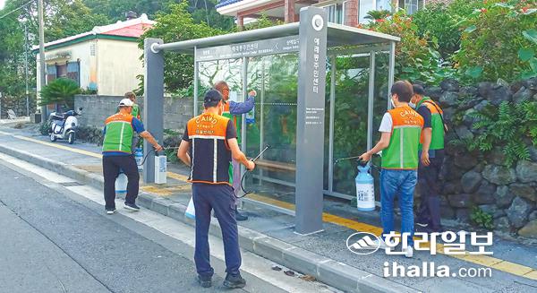 서귀포시 예래동은 지난 12일 본격적인 행락철을 맞아 동 지역자율방재단(단장 김흥구) 회원들과 협업해 행락객들의 이용이 많은 지역 내 주요 버스승차대에 대한 방역을 실시했다.