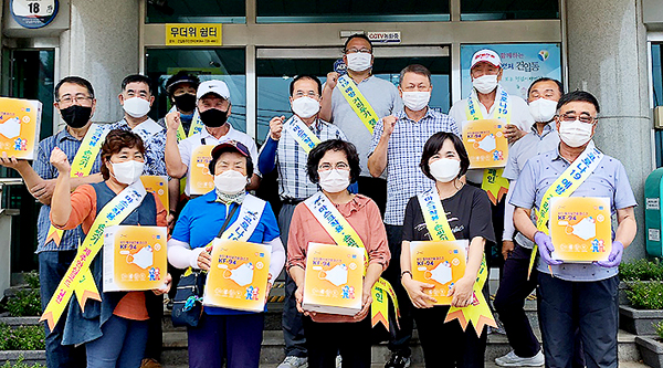 제주시 건입동 주민자치위원회(위원장 윤봉실)는 지난달 30일 여객선터미널에서 제주방문 여행객들에게 마스크를 나눠주며 코로나19 방역지침을 지켜달라고 당부했다.