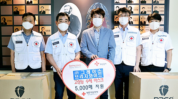 (주)그레이스브리지와이드(대표이사 윤일호)는 지난달 30일 대한적십자사제주특별자치도지사(회장 오홍식)에 취약계층 지원을 위한 3000만원 상당의 고성능 수제 마스크 5000매를 기탁했다.