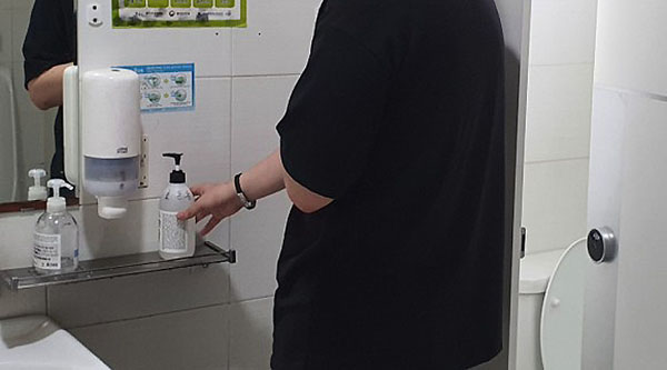 효돈동 공중화장실에 손 소독제 비치